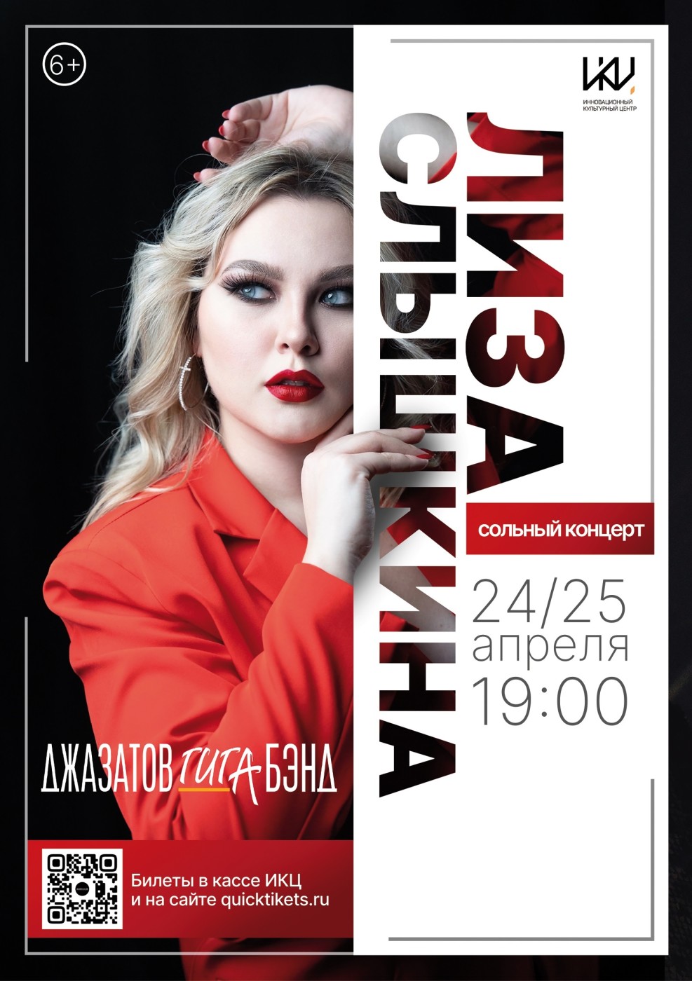 24 и 25 апреля в 19:00 в Инновационном культурном центре состоится долгожданное событие для всех ценителей качественной музыки и ярких голосов — сольный концерт солистки «Джазатов Гига Бэнд» Елизаветы Слышкиной.